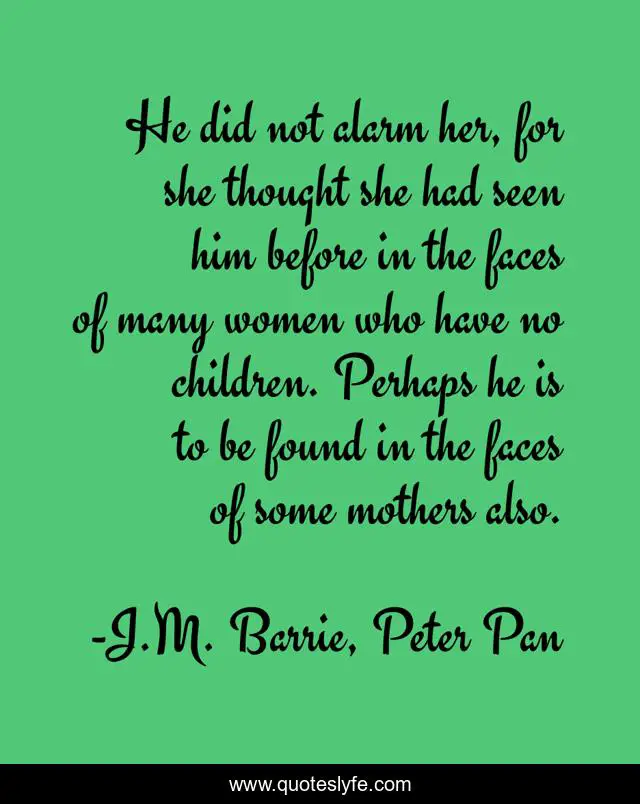 "J.M. Barrie, Peter Pan Quotes." Quoteslyfe.com, 2025. Mon. 08 Dec. 2025. <https://www.quoteslyfe.com/quote/He-did-not-alarm-her-for-she-100260>.