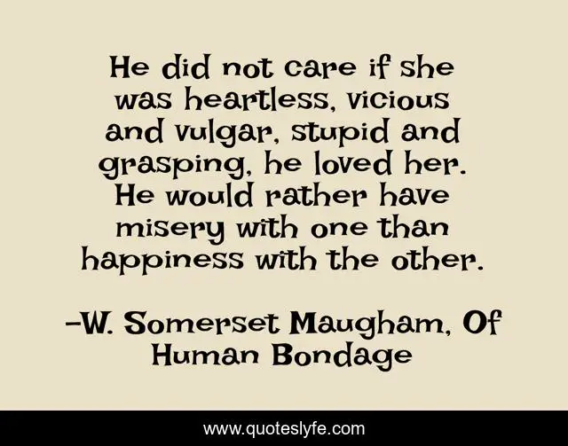 "W. Somerset Maugham, Of Human Bondage Quotes." Quoteslyfe.com, 2025. Sun. 07 Dec. 2025. <https://www.quoteslyfe.com/quote/He-did-not-care-if-she-was-511>.