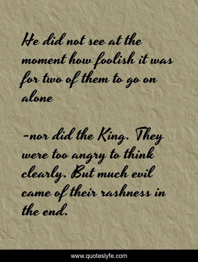 "nor did the King. They were too angry to think clearly. But much evil came of their rashness in the end. Quotes." Quoteslyfe.com, 2025. Sat. 06 Dec. 2025. <https://www.quoteslyfe.com/quote/He-did-not-see-at-the-moment-161425>.