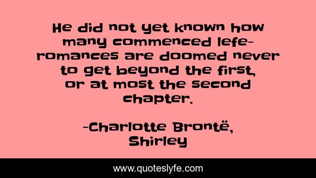 This page presents the quote "He did not yet known how many commenced lefe-romances are doomed never to get beyond the first, or at most the second chapter.". Author of this quote is Charlotte Brontë, Shirley. This quote is about charlottebronte, novel, shirley,.