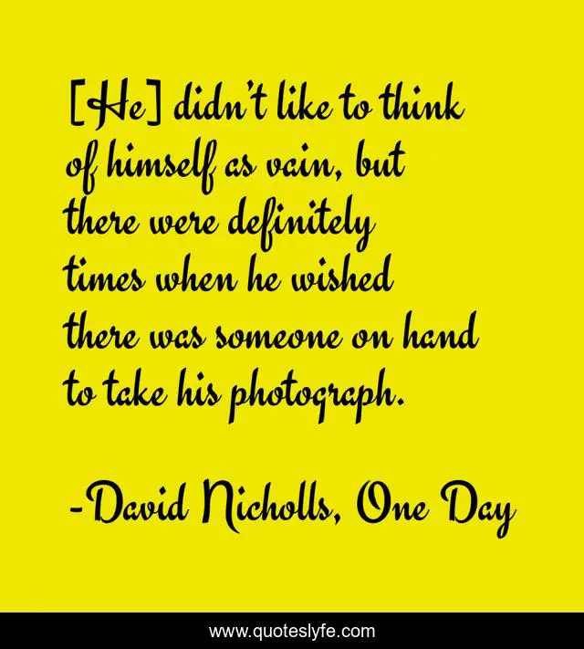 This page presents the quote "[He] didn’t like to think of himself as vain, but there were definitely times when he wished there was someone on hand to take his photograph.". Author of this quote is David Nicholls, One Day. This quote is about photo, vanity,.