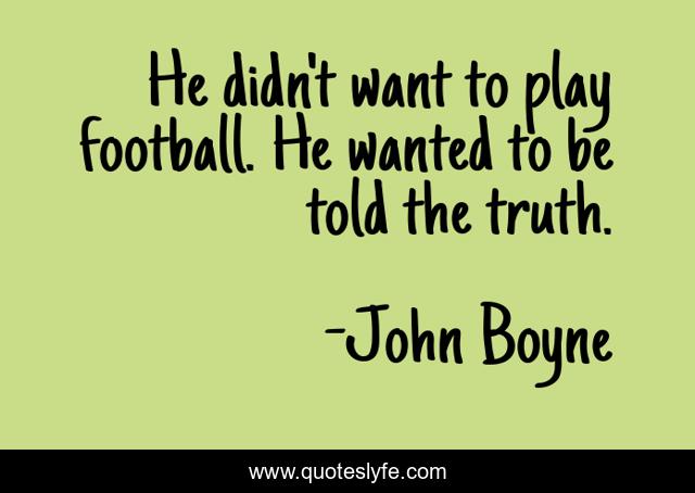 This page presents the quote "He didn't want to play football. He wanted to be told the truth.". Author of this quote is John Boyne. This quote is about life, childhood, truth,.