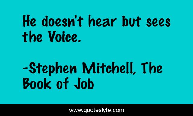 "Stephen Mitchell, The Book of Job Quotes." Quoteslyfe.com, 2025. Sun. 07 Dec. 2025. <https://www.quoteslyfe.com/quote/He-doesn-t-hear-but-sees-the-257818>.
