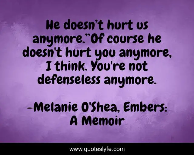 "Melanie O'Shea, Embers: A Memoir Quotes." Quoteslyfe.com, 2025. Sat. 06 Dec. 2025. <https://www.quoteslyfe.com/quote/He-doesn-t-hurt-us-anymore-Of-122048>.