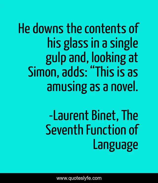 This page presents the quote "He downs the contents of his glass in a single gulp and, looking at Simon, adds: “This is as amusing as a novel.". Author of this quote is Laurent Binet, The Seventh Function of Language. .