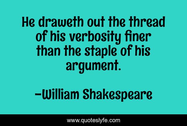 This page presents the quote "He draweth out the thread of his verbosity finer than the staple of his argument.". Author of this quote is William Shakespeare. This quote is about speakers, speeches,.