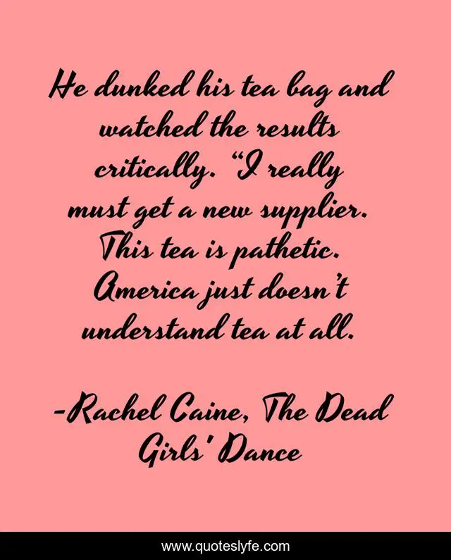 "Rachel Caine, The Dead Girls' Dance Quotes." Quoteslyfe.com, 2025. Tue. 09 Dec. 2025. <https://www.quoteslyfe.com/quote/He-dunked-his-tea-bag-and-watched-55545>.