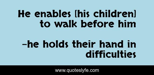 This page presents the quote "He enables [his children] to walk before him". Author of this quote is he holds their hand in difficulties. .