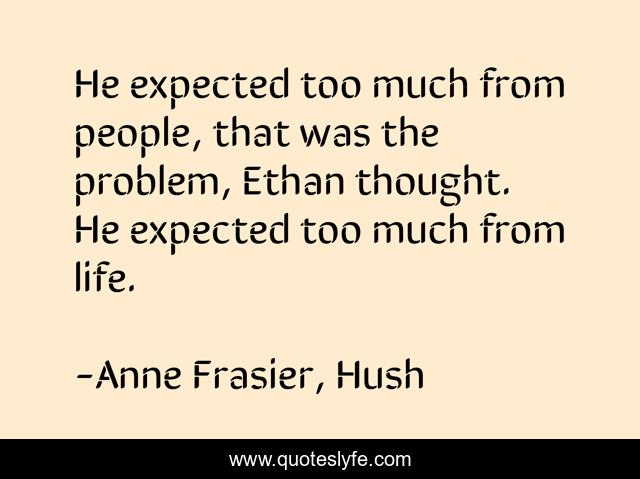 This page presents the quote "He expected too much from people, that was the problem, Ethan thought. He expected too much from life.". Author of this quote is Anne Frasier, Hush. This quote is about life, expectations,.