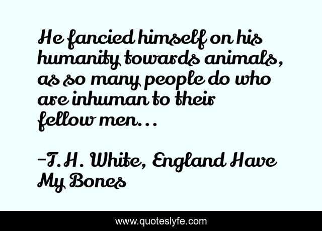 This page presents the quote "He fancied himself on his humanity towards animals, as so many people do who are inhuman to their fellow men...". Author of this quote is T.H. White, England Have My Bones. .