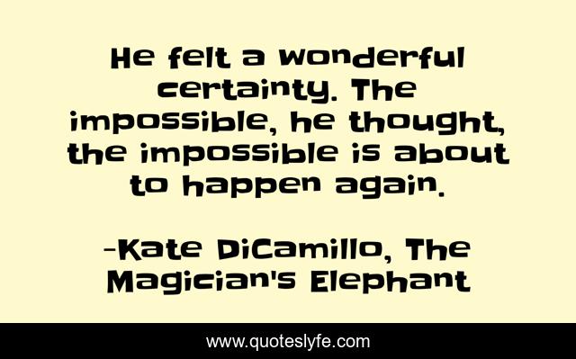 "Kate DiCamillo, The Magician's Elephant Quotes." Quoteslyfe.com, 2025. Sun. 07 Dec. 2025. <https://www.quoteslyfe.com/quote/He-felt-a-wonderful-certainty-The-impossible-133701>.