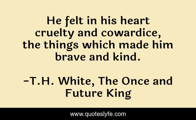This page presents the quote "He felt in his heart cruelty and cowardice, the things which made him brave and kind.". Author of this quote is T.H. White, The Once and Future King. This quote is about fantasy, kindness, arthurian-legend,.