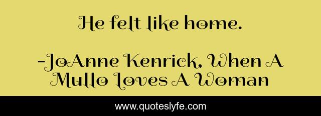 "JoAnne Kenrick, When A Mullo Loves A Woman Quotes." Quoteslyfe.com, 2025. Tue. 09 Dec. 2025. <https://www.quoteslyfe.com/quote/He-felt-like-home-18083>.