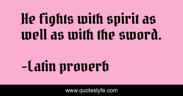 This page presents the quote "He fights with spirit as well as with the sword.". Author of this quote is Latin proverb. .