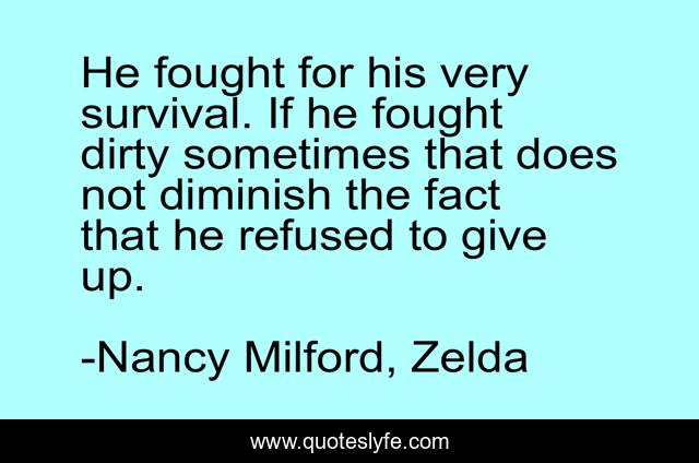 This page presents the quote "He fought for his very survival. If he fought dirty sometimes that does not diminish the fact that he refused to give up.". Author of this quote is Nancy Milford, Zelda. This quote is about survival, determination,.