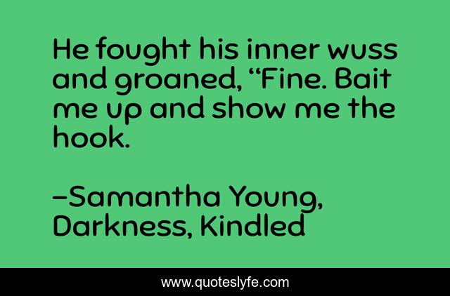 This page presents the quote "He fought his inner wuss and groaned, “Fine. Bait me up and show me the hook.". Author of this quote is Samantha Young, Darkness, Kindled. .