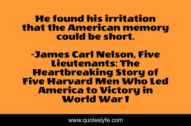 "James Carl Nelson, Five Lieutenants: The Heartbreaking Story of Five Harvard Men Who Led America to Victory in World War I Quotes." Quoteslyfe.com, 2025. Mon. 08 Dec. 2025. <https://www.quoteslyfe.com/quote/He-found-his-irritation-that-the-American-70826>.