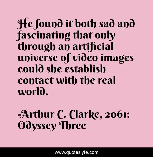 This page presents the quote "He found it both sad and fascinating that only through an artificial universe of video images could she establish contact with the real world.". Author of this quote is Arthur C. Clarke, 2061: Odyssey Three. .