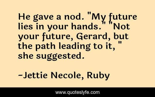 "Jettie Necole, Ruby Quotes." Quoteslyfe.com, 2025. Mon. 08 Dec. 2025. <https://www.quoteslyfe.com/quote/He-gave-a-nod-My-future-lies-190442>.