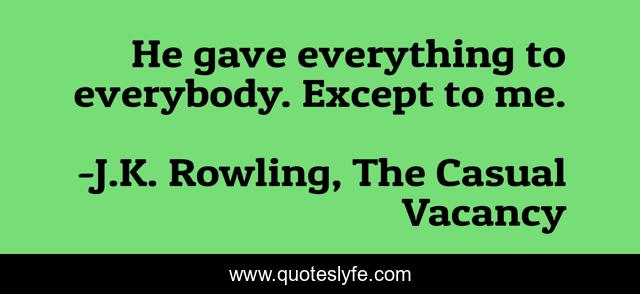 This page presents the quote "He gave everything to everybody. Except to me.". Author of this quote is J.K. Rowling, The Casual Vacancy. This quote is about anger, after-death, sadness, bitter, the-ones-we-leave-behind,.