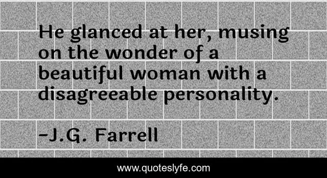 This page presents the quote "He glanced at her, musing on the wonder of a beautiful woman with a disagreeable personality.". Author of this quote is J.G. Farrell. .