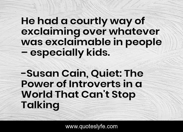 "Susan Cain, Quiet: The Power of Introverts in a World That Can't Stop Talking Quotes." Quoteslyfe.com, 2025. Sun. 07 Dec. 2025. <https://www.quoteslyfe.com/quote/He-had-a-courtly-way-of-exclaiming-185652>.