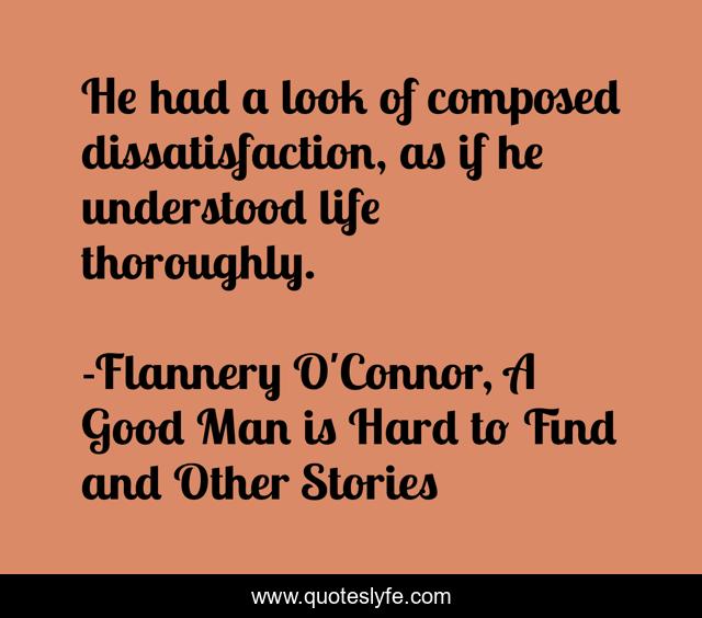 This page presents the quote "He had a look of composed dissatisfaction, as if he understood life thoroughly.". Author of this quote is Flannery O'Connor, A Good Man is Hard to Find and Other Stories. This quote is about insight, education, philosophy, cynicism,.