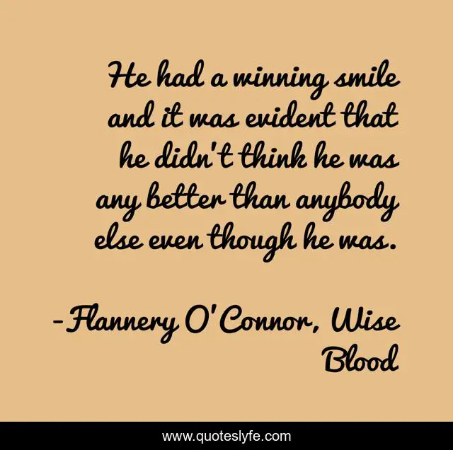 "Flannery O'Connor, Wise Blood Quotes." Quoteslyfe.com, 2025. Sun. 07 Dec. 2025. <https://www.quoteslyfe.com/quote/He-had-a-winning-smile-and-it-249530>.