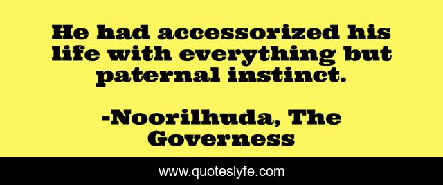 This page presents the quote "He had accessorized his life with everything but paternal instinct.". Author of this quote is Noorilhuda, The Governess. This quote is about inspirational-life, fathers-and-daughters, religious, regency-era, wrong-choices,.