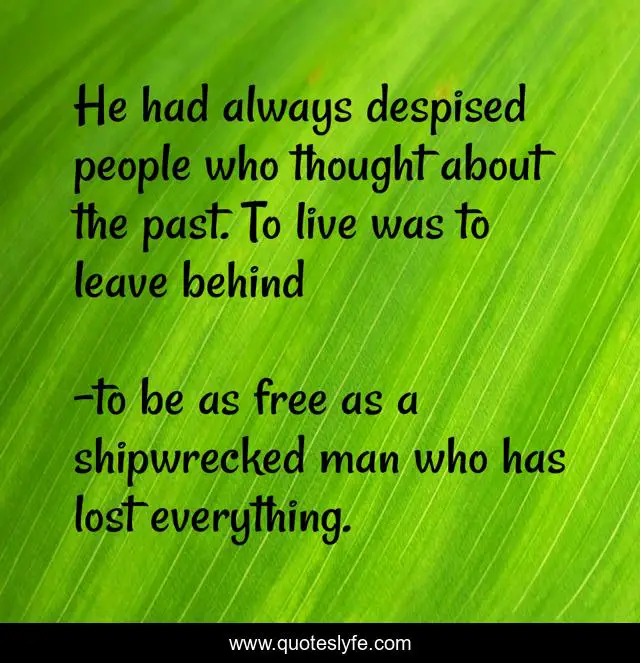 This page presents the quote "He had always despised people who thought about the past. To live was to leave behind". Author of this quote is to be as free as a shipwrecked man who has lost everything.. This quote is about graham greene, england made me,.