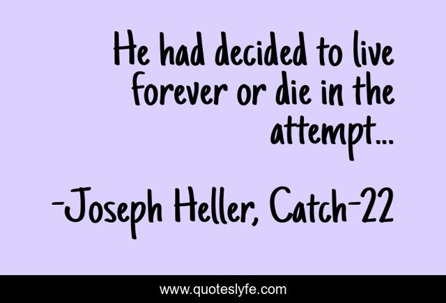 "Joseph Heller, Catch-22 Quotes." Quoteslyfe.com, 2025. Mon. 08 Dec. 2025. <https://www.quoteslyfe.com/quote/He-had-decided-to-live-forever-or-52908>.