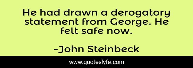 This page presents the quote "He had drawn a derogatory statement from George. He felt safe now.". Author of this quote is John Steinbeck. .