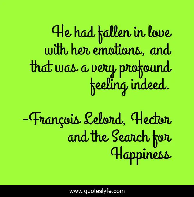 This page presents the quote "He had fallen in love with her emotions, and that was a very profound feeling indeed.". Author of this quote is François Lelord, Hector and the Search for Happiness. This quote is about lovers, love, profound, emotions, feelings, complex, affection,.