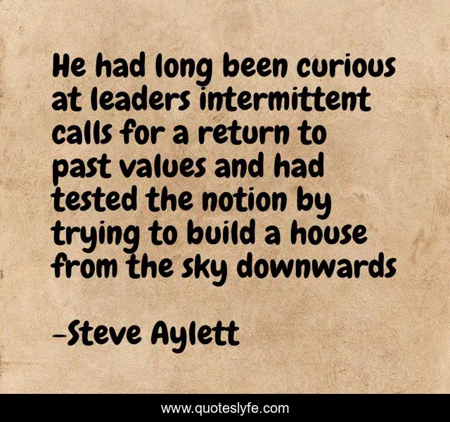 This page presents the quote "He had long been curious at leaders intermittent calls for a return to past values and had tested the notion by trying to build a house from the sky downwards". Author of this quote is Steve Aylett. .