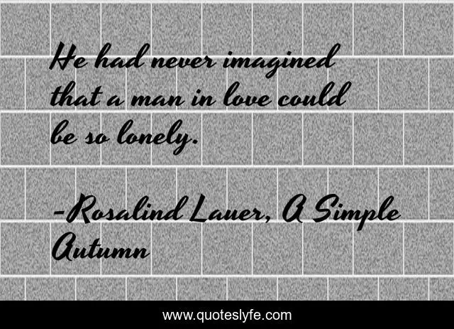 This page presents the quote "He had never imagined that a man in love could be so lonely.". Author of this quote is Rosalind Lauer, A Simple Autumn. This quote is about amish, god, lonely, love, affection,.