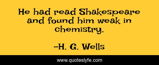 This page presents the quote "He had read Shakespeare and found him weak in chemistry.". Author of this quote is H. G. Wells. This quote is about science, technology,.