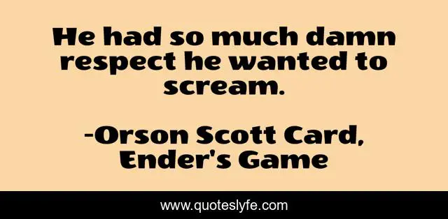 "Orson Scott Card, Ender's Game Quotes." Quoteslyfe.com, 2025. Fri. 05 Dec. 2025. <https://www.quoteslyfe.com/quote/He-had-so-much-damn-respect-he-184892>.