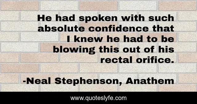 "Neal Stephenson, Anathem Quotes." Quoteslyfe.com, 2025. Sun. 07 Dec. 2025. <https://www.quoteslyfe.com/quote/He-had-spoken-with-such-absolute-confidence-149425>.
