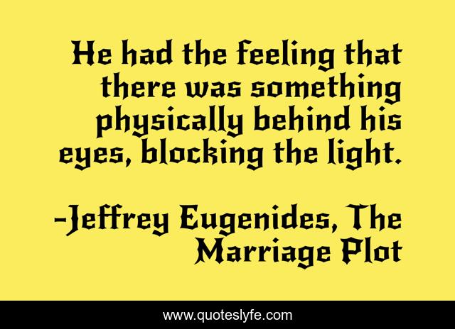 This page presents the quote "He had the feeling that there was something physically behind his eyes, blocking the light.". Author of this quote is Jeffrey Eugenides, The Marriage Plot. This quote is about mental-health, depression, mental-illness,.