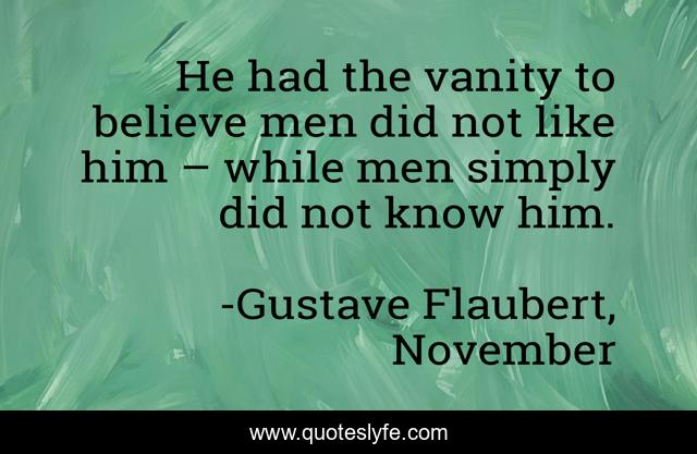 This page presents the quote "He had the vanity to believe men did not like him – while men simply did not know him.". Author of this quote is Gustave Flaubert, November. This quote is about identity, vanity,.