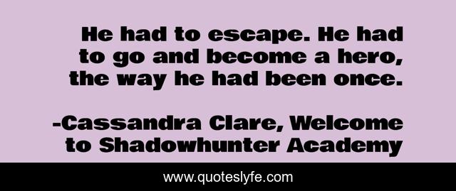 "Cassandra Clare, Welcome to Shadowhunter Academy Quotes." Quoteslyfe.com, 2025. Sun. 07 Dec. 2025. <https://www.quoteslyfe.com/quote/He-had-to-escape-He-had-to-238856>.