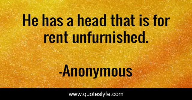 This page presents the quote "He has a head that is for rent unfurnished.". Author of this quote is Anonymous. .