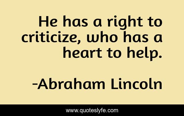 This page presents the quote "He has a right to criticize, who has a heart to help.". Author of this quote is Abraham Lincoln. This quote is about criticism, helping-others, volunteerism,.