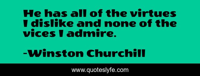 This page presents the quote "He has all of the virtues I dislike and none of the vices I admire.". Author of this quote is Winston Churchill. This quote is about quips, comments,.