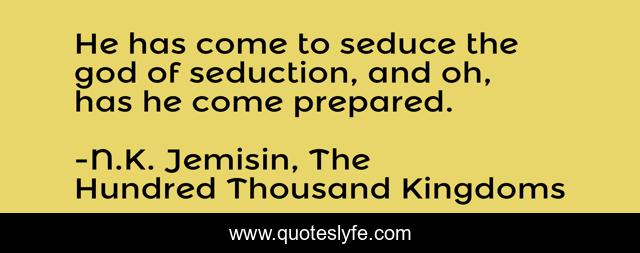 This page presents the quote "He has come to seduce the god of seduction, and oh, has he come prepared.". Author of this quote is N.K. Jemisin, The Hundred Thousand Kingdoms. .