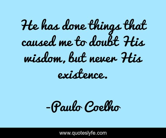 This page presents the quote "He has done things that caused me to doubt His wisdom, but never His existence.". Author of this quote is Paulo Coelho. .