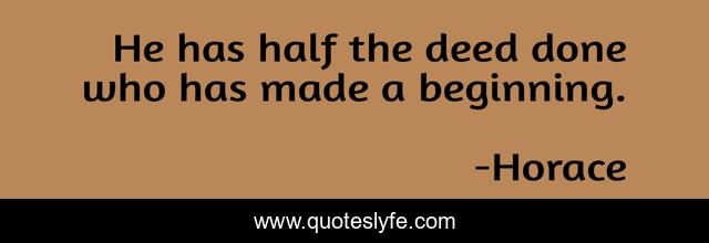 This page presents the quote "He has half the deed done who has made a beginning.". Author of this quote is Horace. .