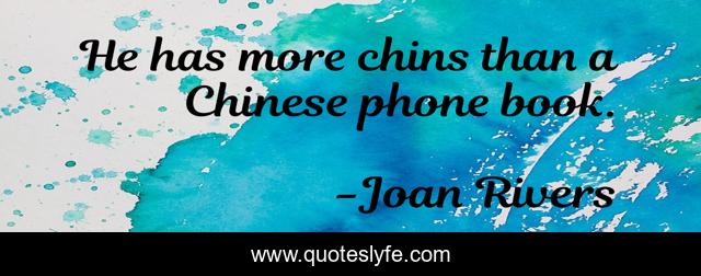 This page presents the quote "He has more chins than a Chinese phone book.". Author of this quote is Joan Rivers. .