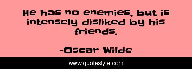 This page presents the quote "He has no enemies, but is intensely disliked by his friends.". Author of this quote is Oscar Wilde. This quote is about disliked, friends, enemies,.