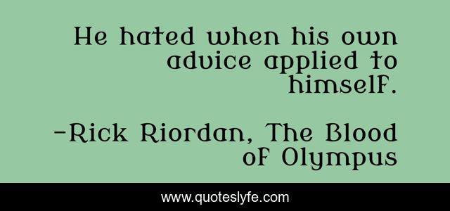 "Rick Riordan, The Blood of Olympus Quotes." Quoteslyfe.com, 2025. Sat. 06 Dec. 2025. <https://www.quoteslyfe.com/quote/He-hated-when-his-own-advice-applied-12360>.